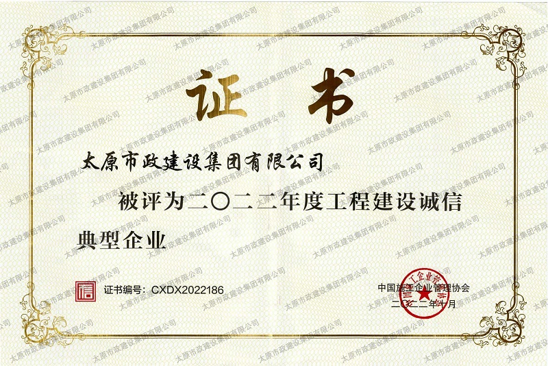2022年度工程建設(shè)誠(chéng)信典型企業(yè)(yè)